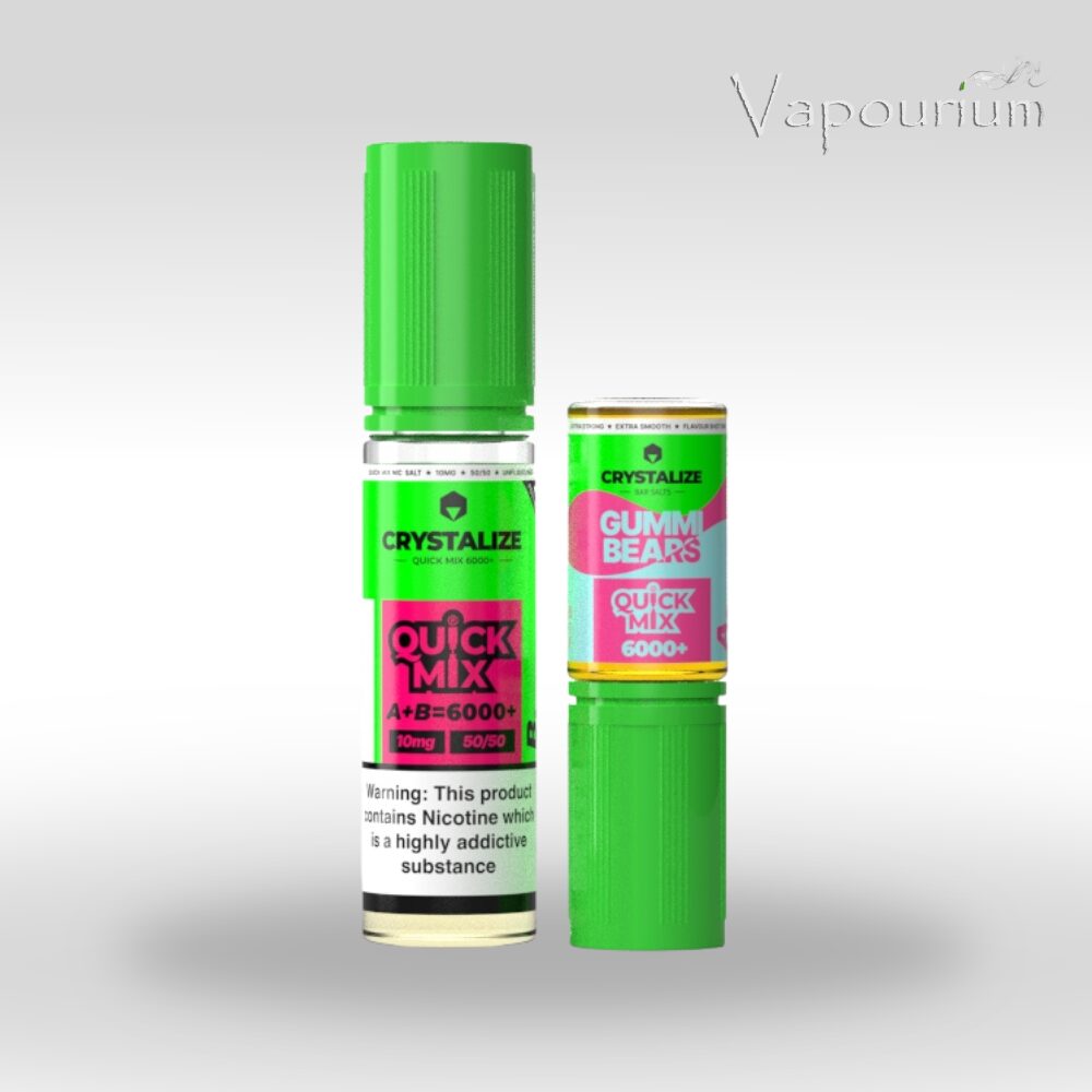 Step into a sweet shop fantasy with Gummi Bears Quick Mix® 6000+ Bar Salt by Crystalize. Bursting with a rainbow of fruity candy notes, this playful bar-style blend captures the chewy, juicy essence of classic gummy bears, delivering a bold hit of nostalgic sweetness with every puff. Rounded off with a light icy breeze on the exhale, it’s a fun and flavourful vape that’s perfect for candy lovers chasing that sweet-shop fix.
